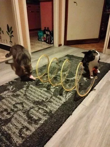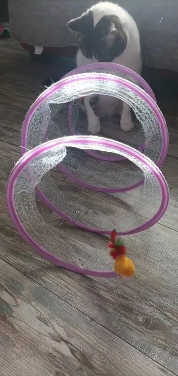 Although my cats were initially hesitant, they eventually warmed up to this toy, particularly enjoying the bell toys on the ends. Now, they use it as intended, running through it with enthusiasm.