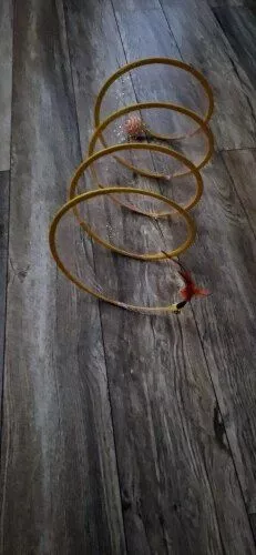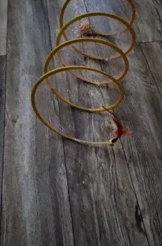 Our kittens, at 14 weeks old, were immediately drawn to this toy. The bell captures their attention from across the room, and they eagerly engage with it. While the feather on the end concerns me due to potential ingestion, the design overall is excellent. The ability for them to move in and out of the spring adds to their enjoyment, and the gold foil enhances its appeal. It seems durable, but only time will tell with our energetic male kitten. Nonetheless, for its price, it's proving to be a worthwhile purchase as both our kittens are enjoying it immensely.