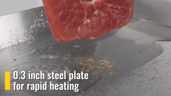 Designed for both home and commercial use, this griddle features a powerful 3000W heating element. The unit comes with a standard power cord, but you’ll need to connect it to your main power line, following the international wiring standards. Additionally, multiple cooling vents on both sides help maintain a safe operating temperature by effectively dissipating heat.