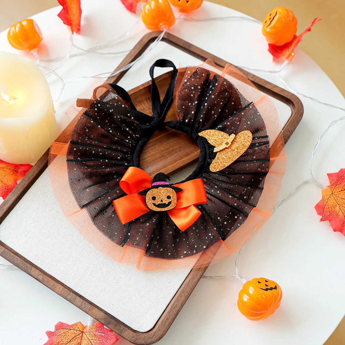 Halloween Lace Wizard Pumpkin Scarf Collar for Small Dogs & Cats