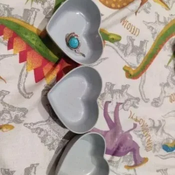 These heart-shaped sauce dishes doubled as charming trinket trays. I customized them with vinyl to propose to my bridesmaids, and they were a hit.