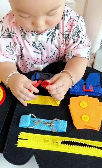 • Improves Fine Motor Skills: Activities like buttoning, zipping, and tying help develop hand-eye coordination and dexterity.