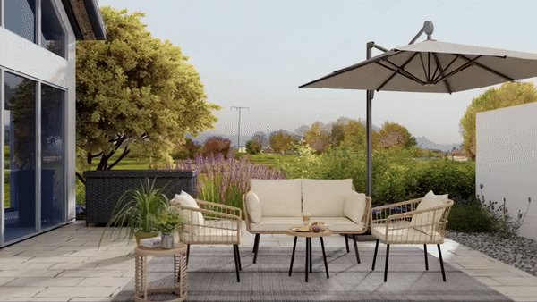 Transform your outdoor space into a luxurious retreat with our Outdoor All-Weather Rattan Conversation Set. This 4-piece sofa set includes a love-seat, two armchairs, and a coffee table, providing ample seating for you and your loved ones to enjoy leisurely moments together.